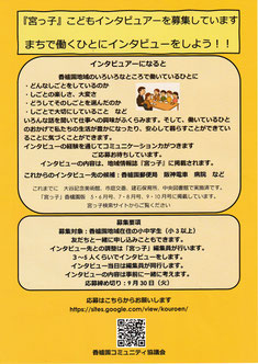 広報チームのお仕事の1つに、西宮のタウン誌『宮っ子』の記事を書くお仕事があります。小学校であった行事の記事を書いたり、行事に関係した人に原稿を依頼したり。書いた記事の編集会議が、2カ月に1回行われていて、その会議に出席しています。